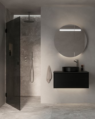 Inspirasjon til svarte bad: I motsetning til det alltid populære hvite badet ser vi svarte bad, som det blir stadig vanligere å søke inspirasjon til og ønske om å innrede med svarte detaljer på dusjvegg, blandebatteri og baderomsoppbevaring. Det du bør tenke på når du skal innrede et bad med svarte detaljer, er å fokusere ekstra på belysning. Å investere i kraner og dusjvegger i stilige utførelser og metaller kan løfte følelsen i det svarte badet betydelig.