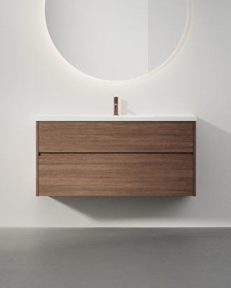 Grand Solid 100 i Dark Oak med benkeplate Plain White og servant Level i Matte White.