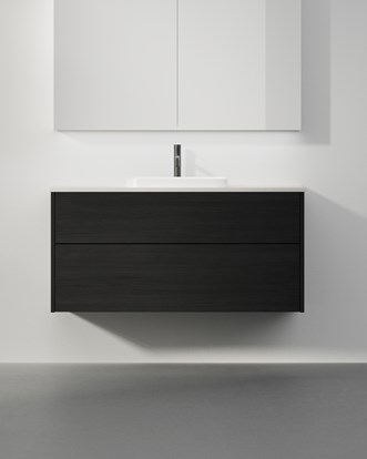 Møbelet får sitt harmoniske og balanserte uttrykk takket være det elegant innfreste grepet der skuffene møtes. Velg din Grand Grip i en av våre finérer – alle overflatebehandlet med TX Top Extreme™ – for et virkelig eksklusivt og slitesterkt møbel. Velg mellom heldekkende servant i porselen eller innfelt servant i benkeplate. Prøv deg fram i vårt studio og tilpass ditt eget møbel med matchende høyskap. Alle servantskap