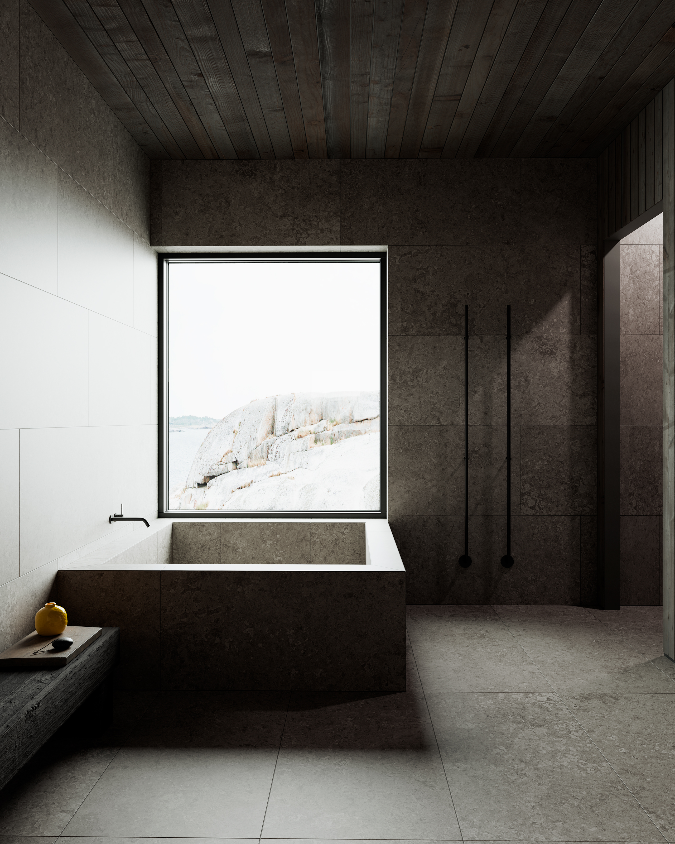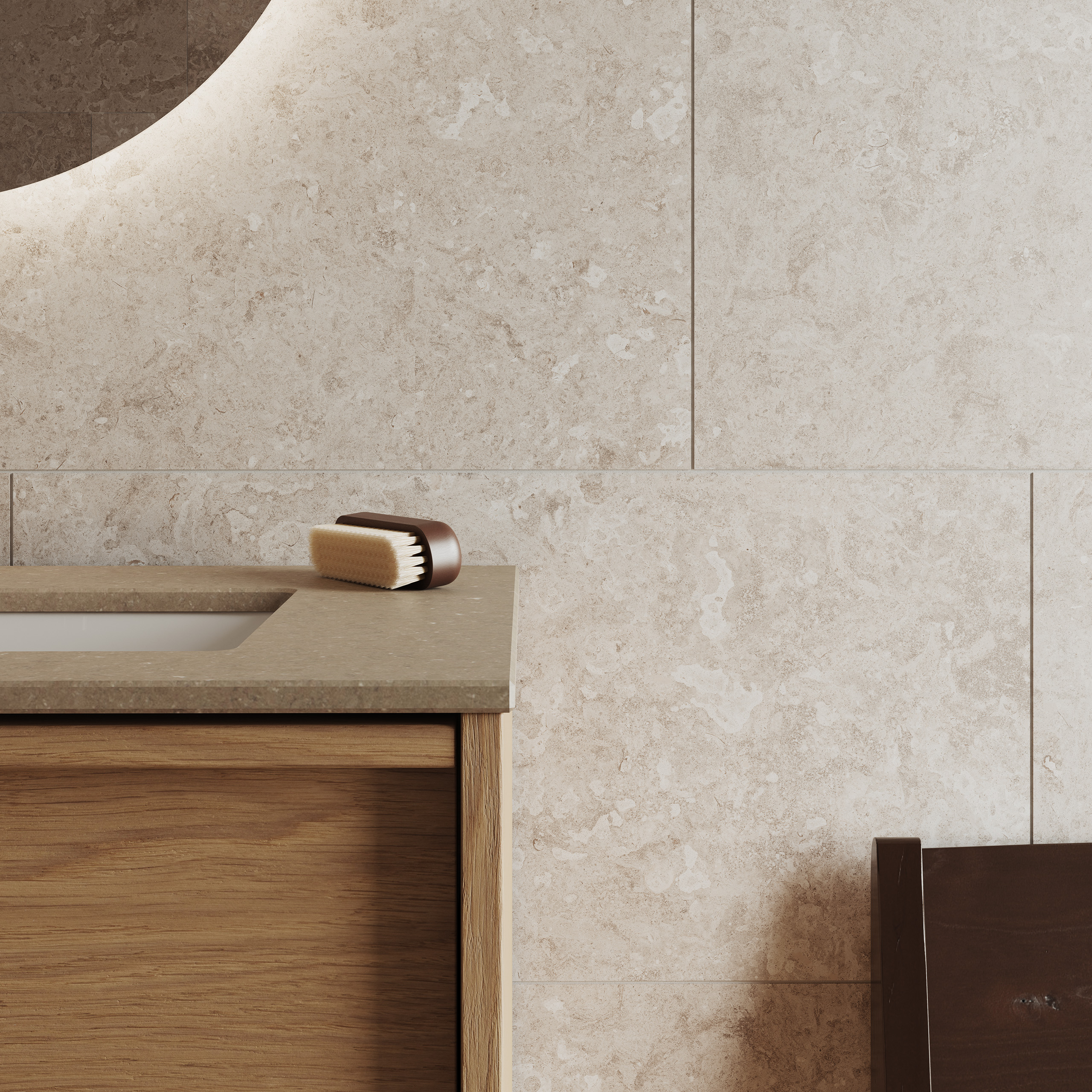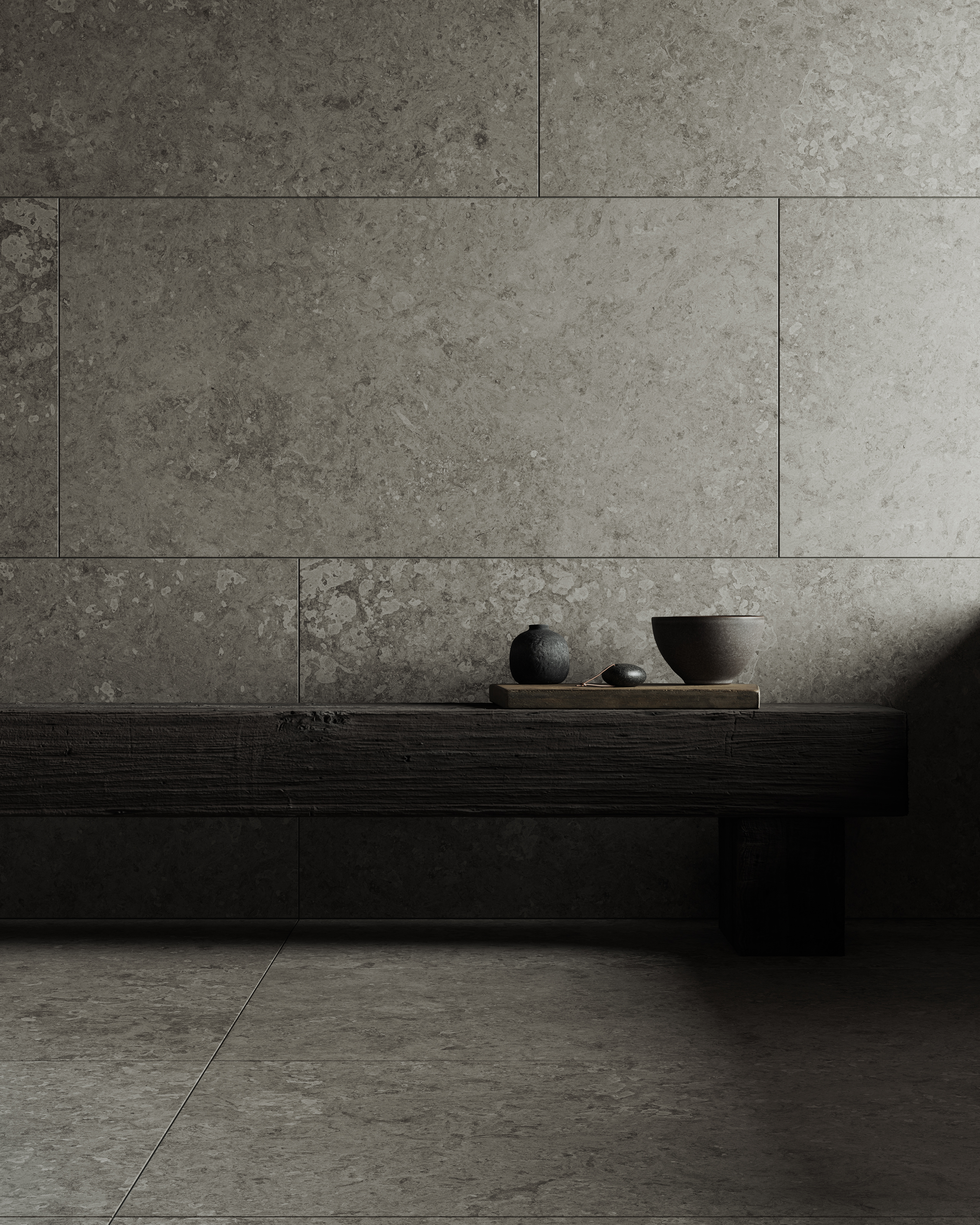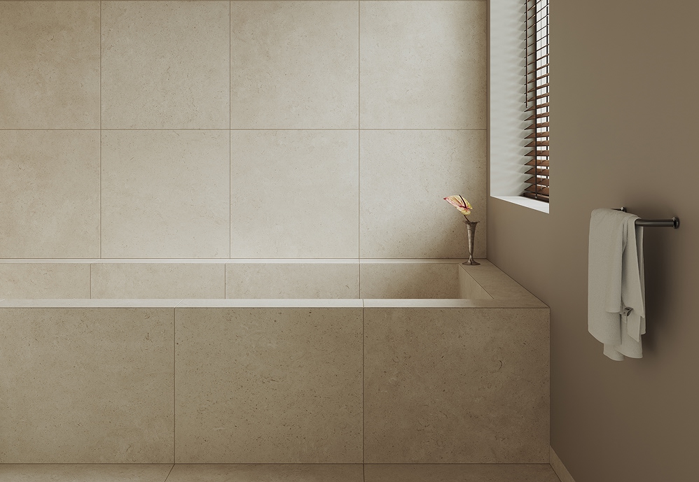 Serien finnes i fire nyanser – fra lys varmgrå til dyp beige – og i seks størrelser, noe som gir stor frihet i utformingen. Med sin halvmatte overflate og taktile struktur fremheves steinens naturlige mønster og gir et genuint, natursteinslignende uttrykk.