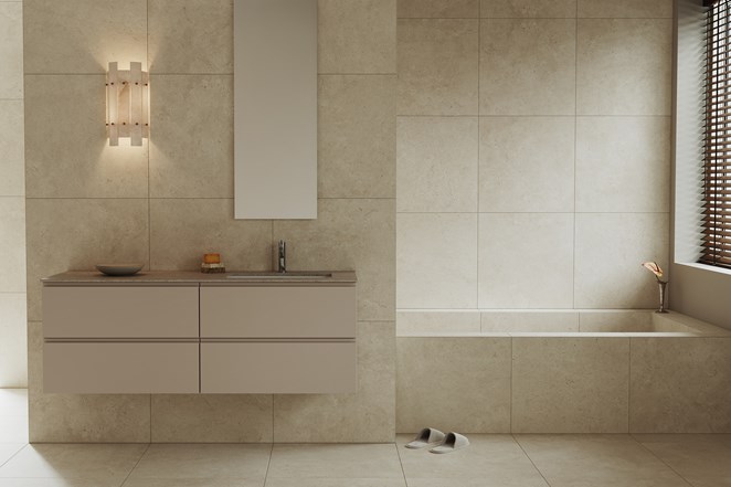Stenvide er som kalksteinen den er inspirert av – myk, nedtonet og varsom. En granittkeramisk tolkning av gotlandsk kalkstein, der tidens påvirkning fra hav, vind og lys gir uttrykket sin harmoniske karakter. Resultatet er en rolig og balansert overflate med finstemt tekstur og en naturlig eleganse. For et stilrent og selvsikkert baderom – skapt for å vare.