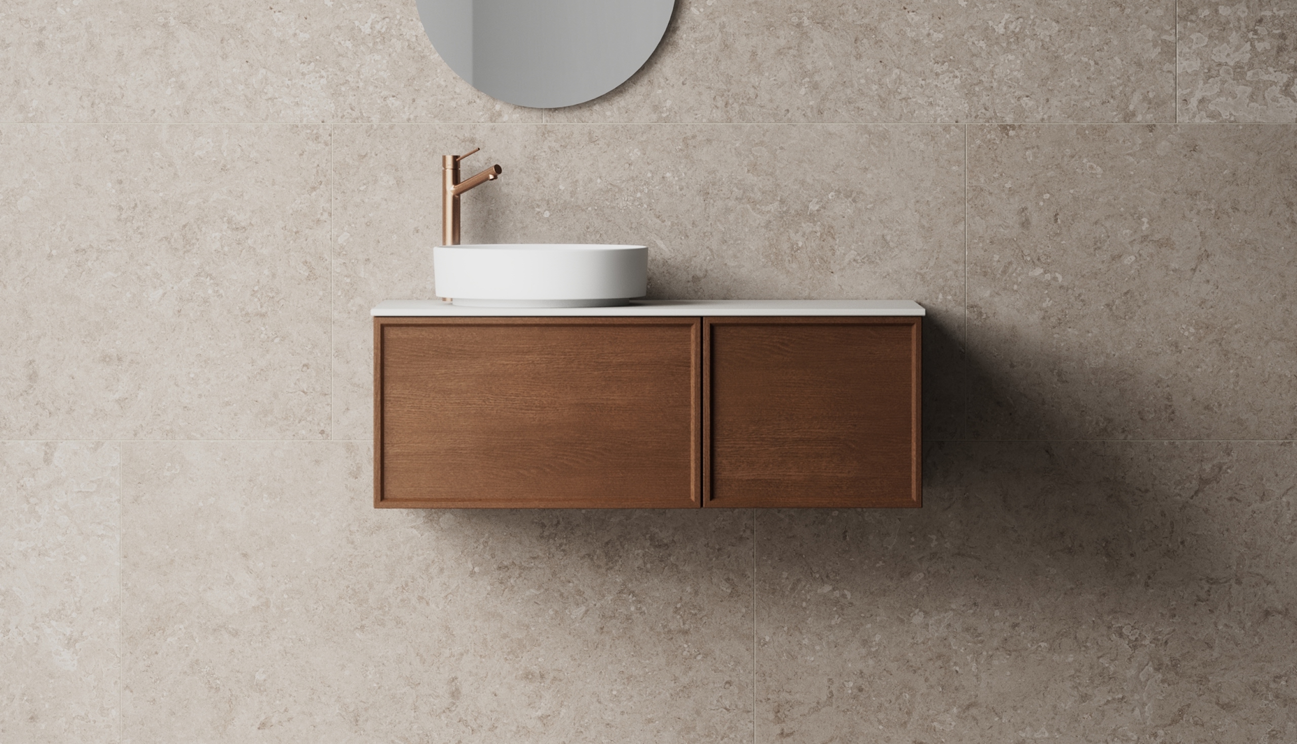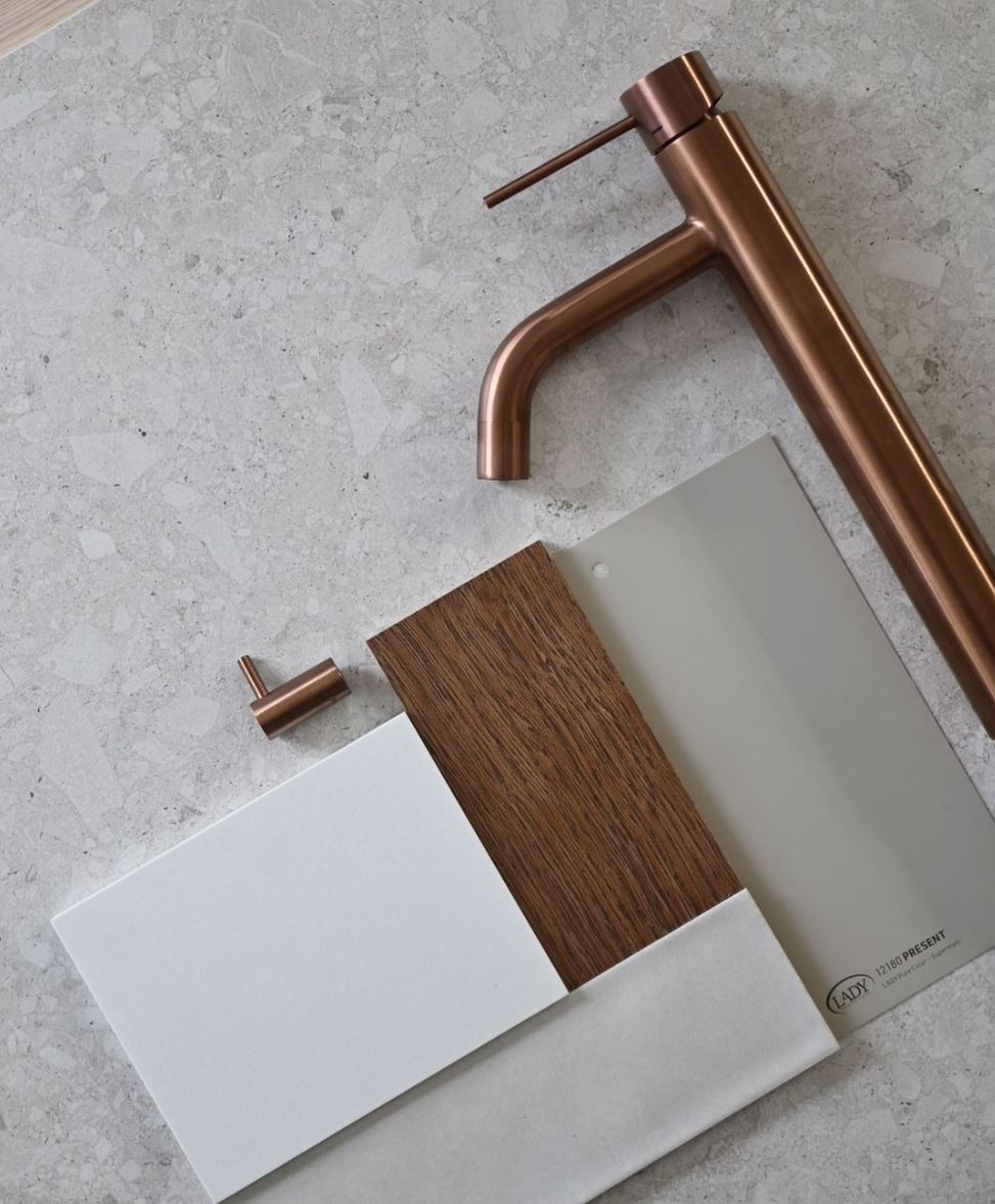 Med sine varme kobbertoner gir Brushed Bronze en vakker balanse mellom klassisk eleganse og det moderne. Utførelsen fungerer utmerket med både varme og kalde materialer og kan enkelt tilpasses din personlige stil. For et industrielt preg, kombiner med polert betong eller velg fliser i beige eller sandtoner for å framheve varmen i utførelsen. Mørk eikefinér på møblene skaper en sammenhengende og innbydende helhet. Scroll ned for tips og inspirasjon.