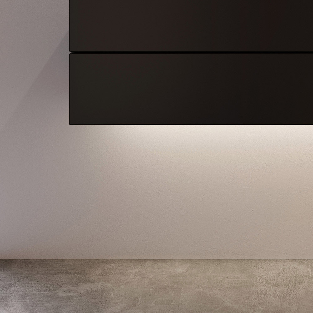 Tilvalget Plus Light er sensorstyrt LED-belysning i øvre skuff og under servantskapet, som begynner å lyse når du kommer inn i rommet.