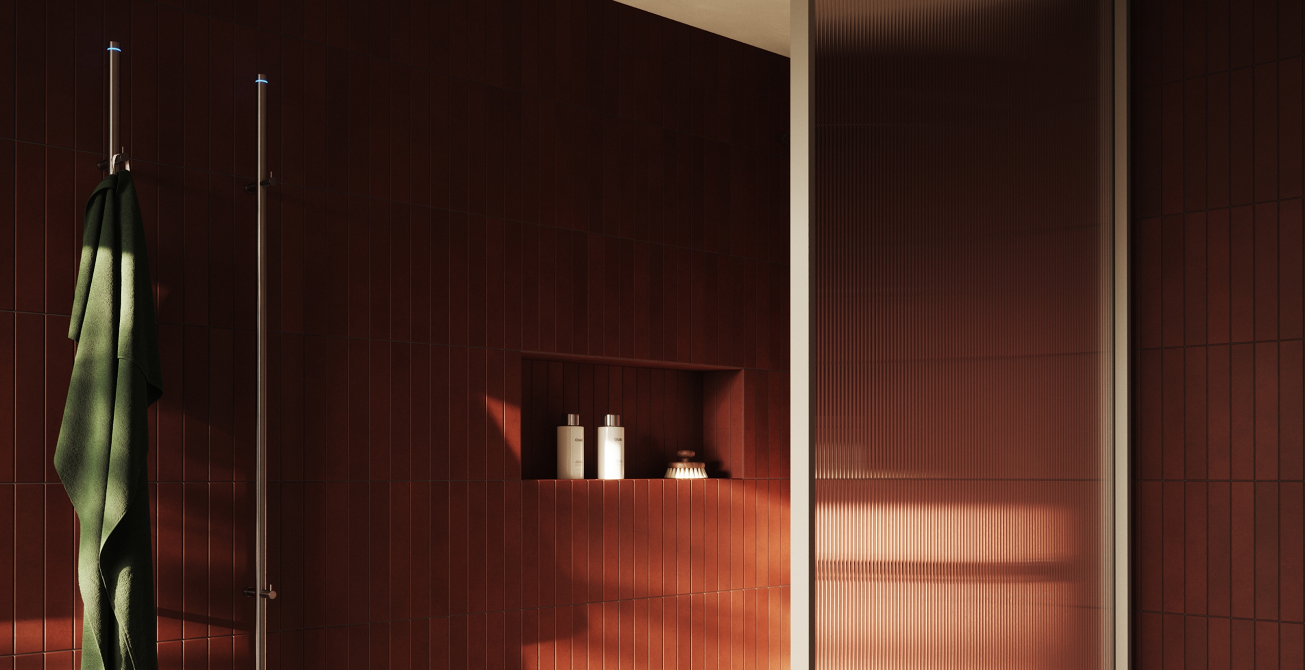 Dusjveggen i 8 mm bronsefarget glass rammes inn av beslag, blandebatteri og håndkletørker i børstet bronse – en gjennomført finish som tilfører badet varme og eleganse. Detaljene snakker samme språk, og sammen skaper de et rom der funksjon møter estetikk i ro og harmoni. Et rom å trives i, hver dag.