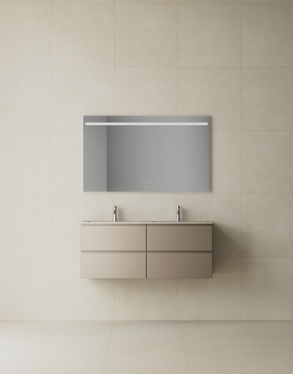 Servantskap med dobbel servant og slett front med integrert grepslist.