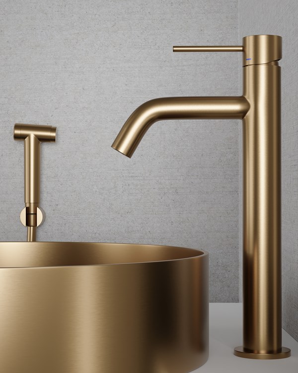 Høyt servantbatteri med hånddusj i rustfritt stål. Den sømløse og elegante designen er perfekt til toppmonterte servanter. Den avanserte teknologien sikrer effektivt vannforbruk uten å gå på kompromiss med ytelsen, noe som gjør dette til et bærekraftig valg. Den praktiske hånddusjen – eller bidéfunksjonen om du vil – forenkler intimhygienen og kan brukes til så mangt - enten det er for å skylle ulike ting eller fylle en bøtte med vann.