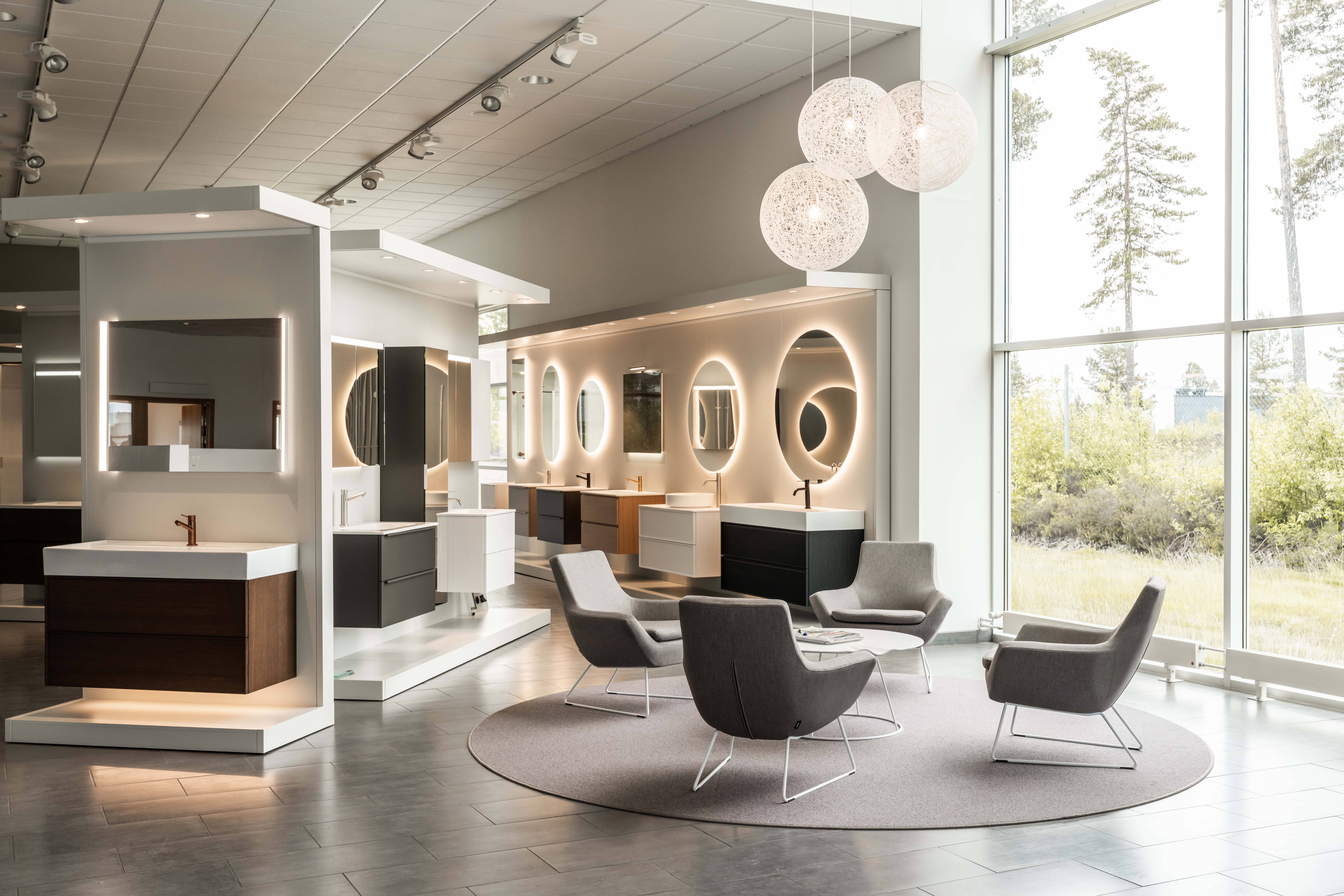 Mellomhøyt servantbatteri med hånddusj, perfekt for innfelt servant.