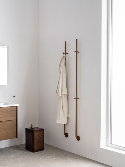 En stilren knagg som matcher Line håndkletørker. Fås i de samme utførelsene som håndkletørkeren og i valgfri NCS-farge.