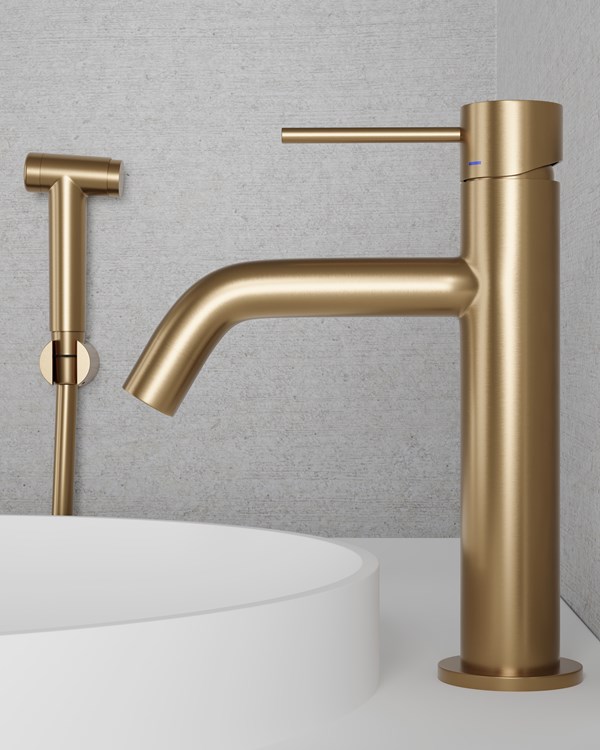 Mellomhøyt servantbatteri med hånddusj, perfekt for innfelt servant.