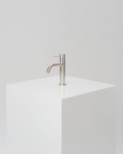Mellomhøyt servantbatteri produsert i rustfritt stål.