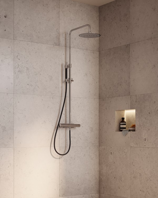 Den innebygde gummisilen, som har hull som utvider seg med vanntrykket, gir en tak- og hånddusj som er lett å holde ren for både skitt og kalkrester.