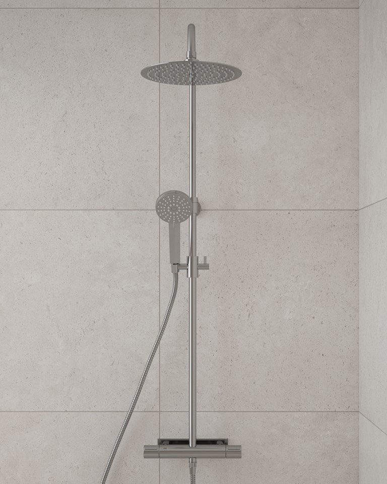 Dusjhjørne med to rette innsvingbare dører i 6 mm glass. Finnes i faste standardmål som du kan kombinere fritt, men også i måltilpasset utførelse. Kan kombineres med Pile.
