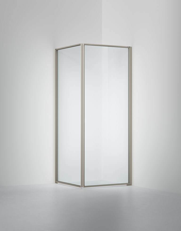 Dusjhjørne med to dører i 6 mm glass og med integrert grep. Finnes i 900x900 mm og i måltilpasset utførelse.