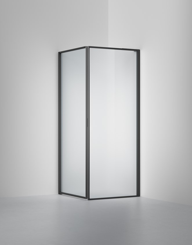 På badet tar Edge plass som et vakkert maleri, symmetrisk og innrammet i anodisert aluminium i to utførelser. Det unike konstruksjonen til rammen skaper et sofistikert skyggespill mot veggen. Glasset vender innover i dusjen, noe som framhever den utvendige formen på rammen og forenkler rengjøring. Navet i Edge er hengslet med aksel i rustfritt stål - et utmerket eksempel på perfeksjonen i mekanikken som kjennetegner serien. Hjørnene på rammen er i massiv aluminium med innovativ konstruksjon som skjuler alt som ikke er estetisk.