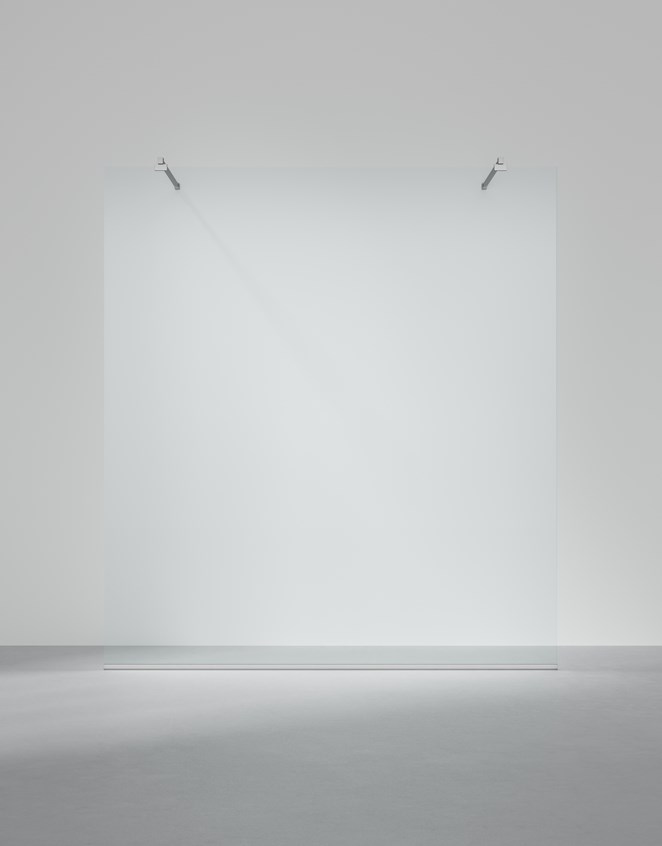 En frittstående løsning i 8 mm glass for plassering midt på vegg. Måltilpasses innen angitte intervaller. Tilpasses enkelt etter akkurat dine mål.