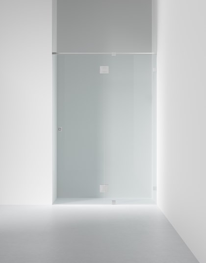 Dusjløsning med en fast vegg og en dør i 6 mm glass med integrert grep. Måltilpasses innen angitte intervaller.