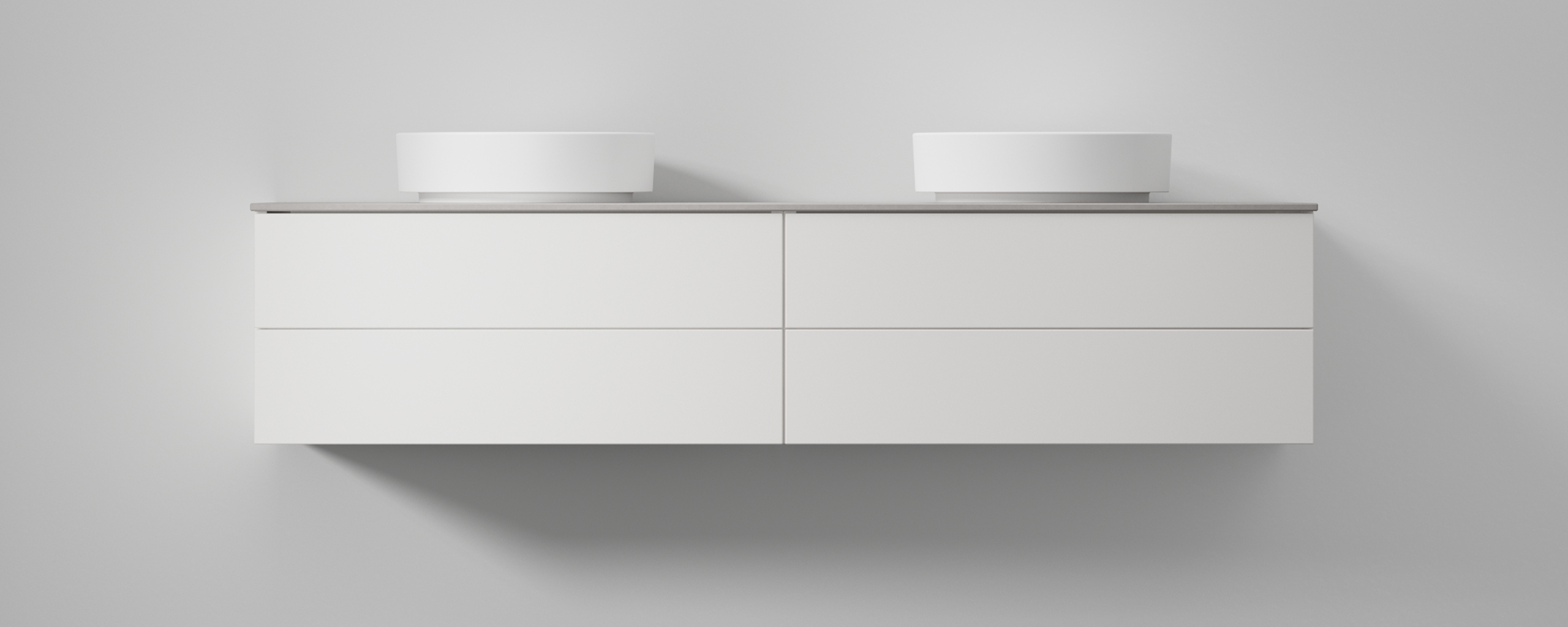 Servantskap med to skuffer og åpen oppbevaring. Svevende følelse og minimalistisk design. TX Top Extreme™.