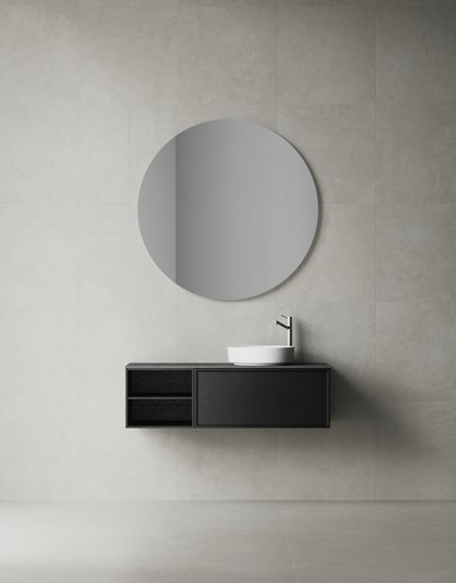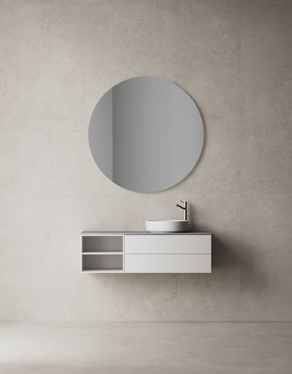 Svevende lett, men romslig på samme tid. Air Solid kan skilte med minimalistisk perfeksjon med strenge linjer mellom skuffefronter og dører. Frontenes myke bue og slette overflate får en til å tenke på stuen, men Air Solid er i høyeste grad et møbel tilpasset det tøffe miljøet på badet. Den kraftige TX Top Extreme-lakken og skuffene fra Grass med behagelig og stabil bevegelse gjør at møbelet vil vare i mange år. Velg mellom Premium White og Accent/NCS samt tre slanke, vakre og slitesterke benkeplater i kvartskompositt. Kombiner med den runde servanten i matt hvit eller matt svart porselen. Velg også et høyt servantbatteri og bunnventil. Benkeplaten kan også bestilles uten hull til servantbatteri. Air Solid tar seg best ut med Push, men du kan også velge grep eller håndtak hvis du ønsker det i stedet. Tilfør møbelet ditt det lille ekstra med et eller flere tilvalg: stemningsskapende, sensorstyrt belysning i og under servantskapet og praktisk stikkontakt. Oppbevaring for småting i to eksemplarer inngår i hver 60/80-enhet. Suppler med flere.