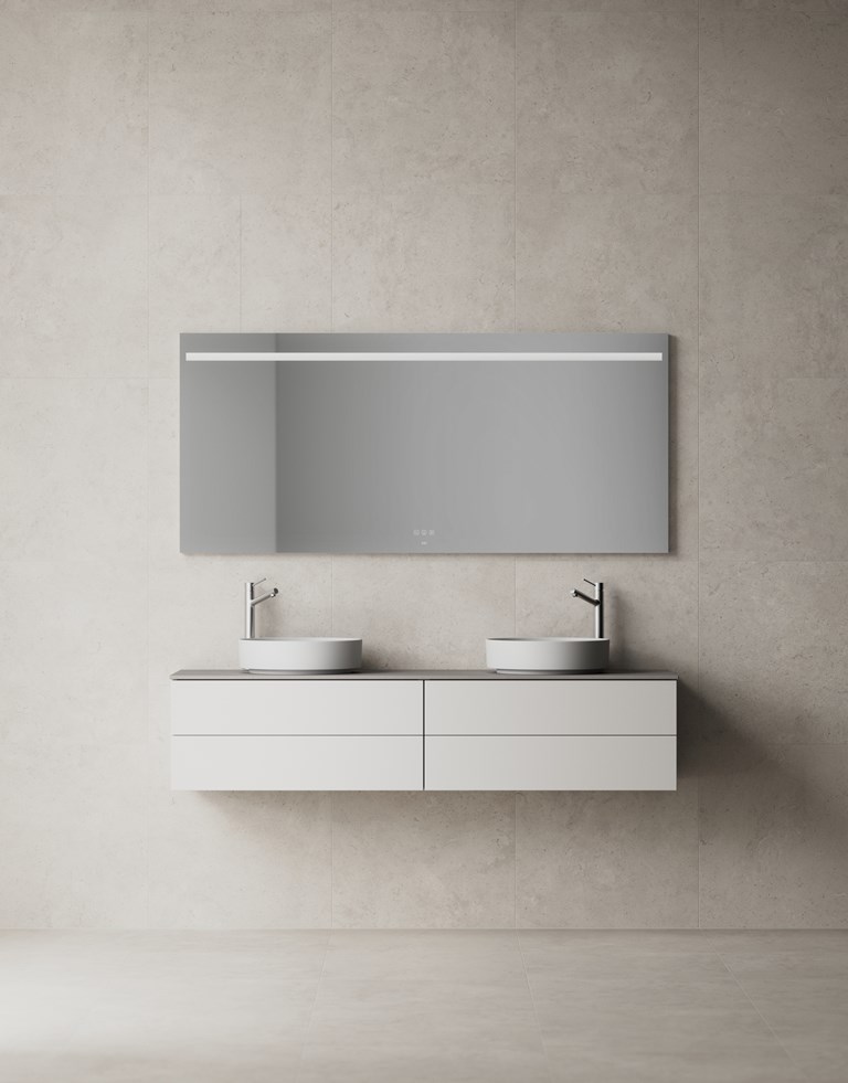 Servantskap med fire skuffer og to servanter. Svevende følelse og minimalistisk design. TX Top Extreme™.