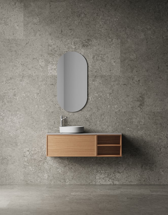 Air Wood er vårt mest forseggjorte møbel og like autentisk som det ser ut. Servantskapet får sin sterke identitet og genuine uttrykk takket være detaljene i massiv eik og den rominndelte innvendige skuffen som skjuler seg bak den hele fronten. Den mattlakkerte eikefinéren gir en ubehandlet følelse, hvor treets naturlige variasjoner gjør møbelet enda vakrere over tid. Velg mellom tre vakre finérer, alle med vår unike overflatebehandling TX Top Extreme™. Til serien får du tre slanke, vakre og slitesterke benkeplater i kvartskompositt. Kombiner med rund servant i hvit eller matt svart porselen. Velg et høyt servantbatteri og bunnventil. Benkeplaten kan også bestilles uten hull til servantkran. Med Air Wood møter håndverkstradisjon fra Småland det moderne livets krav til funksjon. Tilfør møbelet ditt det lille ekstra med et eller flere tilvalg: stemningsgivende, sensorstyrt belysning i og under servantskapet og praktisk stikkontakt. Oppbevaring for småting i to eksemplarer følger med i hver 60/80-enhet. Suppler med flere.
