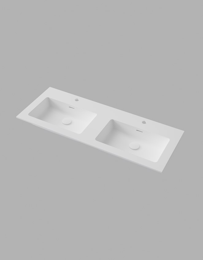 Servantskap med dobbel servant og slett front med integrert grepslist.
