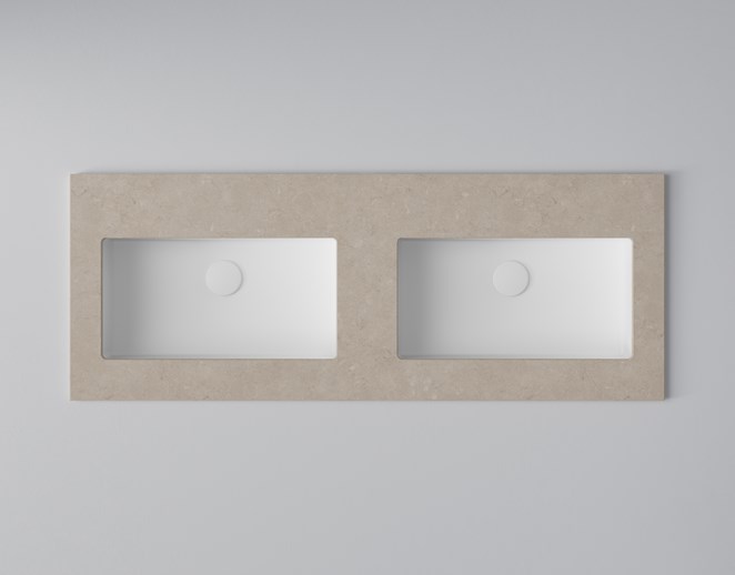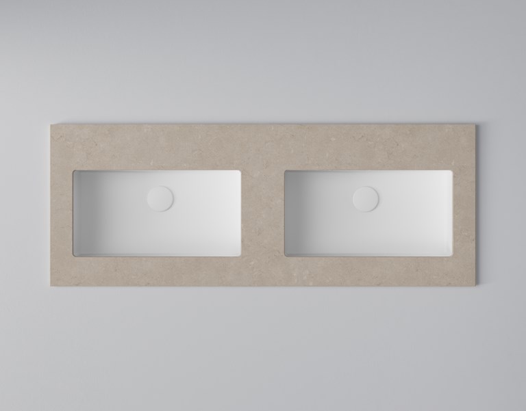 Servantskap med dobbel servant og slett front med integrert grepslist.