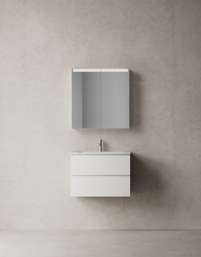 Servantskap med integrert grepslist og slett front, som forener både funksjon og tidløs design. Sett ditt personlige preg med alternativ som porselenservant, servant i solid surface med matt overflate eller benkeplate med en rund toppmontert servant. Du kan oppgradere med tilvalg som sensorstyrt belysning, dobbel stikkontakt og skuffeinndeler i eik, som gjør skuffene med soft-close og antisklimatter enda mer praktiske. Overflatebehandlingen TX Top Extreme™ sørger for en slitesterk overflate som beskytter møblene mot fukt og slitasje, perfekt for miljøet på badet.