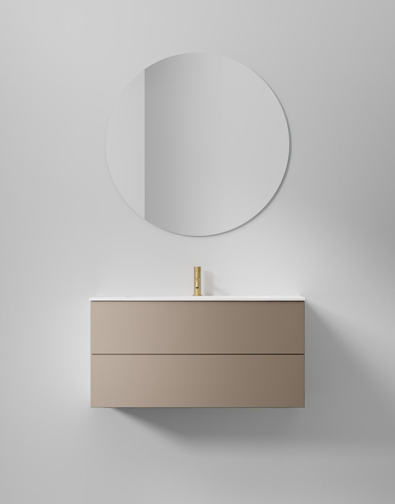 Svenskprodusert servantskap med slette fronter, tilgjengelig i flere farger, som passer til mange ulike stiler. Sett ditt personlige preg med et bredt utvalg av åpningsalternativer, for eksempel push. Velg mellom en klassisk servant i porselen eller en servant i solid surface med matt overflate. Et annet alternativ er benkeplate med ovenpåliggende rund servant. Kompletter møbelet med ett eller flere tilvalg, som sensorstyrt belysning i og under servantskapet samt dobbelt stikkontakt.