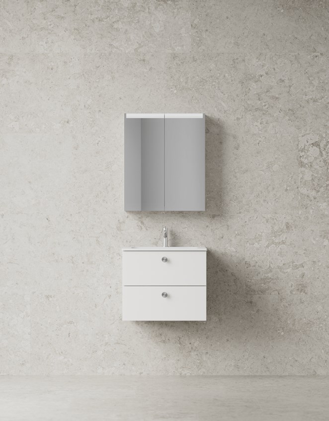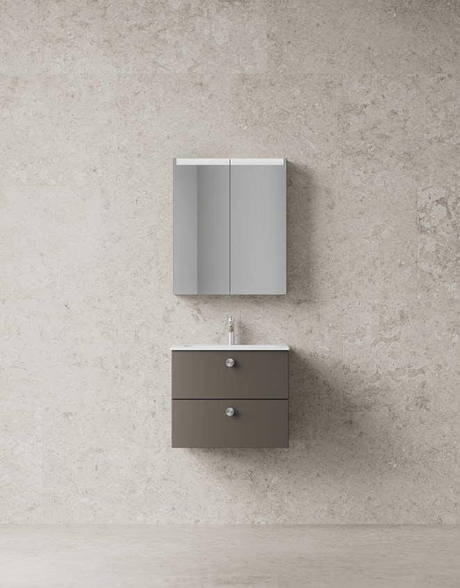 Solid 60 tilbyr optimal oppbevaring bak den slette fronten, som forsterker den tidløse og funksjonelle møbeldesignen. Velg mellom flere åpningsalternativer, for eksempel push. Alle skuffer leveres med soft-close og antisklimatter. Core kan bestilles med flere ulike servanter i ekte porselen eller i det solide og porefrie materialet solid surface. Det er også mulig å kombinere servantskapet med en benkeplate med toppmontert rund rund servant eller benkeplate med underlimt servant. Kompletter med smarte tilvalg som sensorstyrt belysning og dobbel stikkontakt.