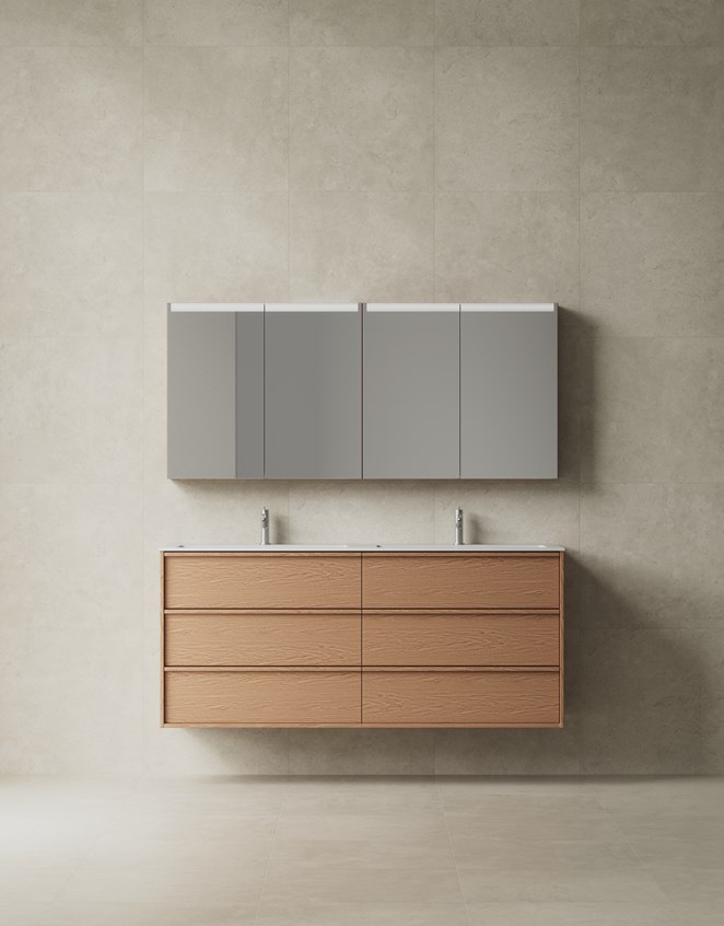 Vårt største servantskap med seks skuffer og dobbel servant. En tydelig tilstedeværelse – rolig, men kraftfull.
