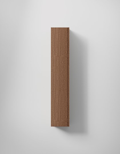 Plassbesparende høyskap i finér med grepslist i massiv eik langs hele dørens langside. Gir en varm trefølelse og maksimal oppbevaring på liten flate.