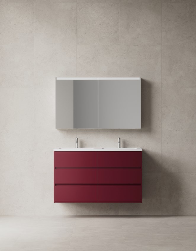 Dobbel servant gjør hverdagen enklere. Velg mellom Smooth i solid surface – med en silkeglatt, porefri overflate og et moderne uttrykk – eller Shape i klassisk porselen. Du kan også kombinere benkeplate og servant. Velg mellom benkeplater i slitesterk mineralkompositt eller solid surface i ultramatt Soft White, og match med toppmontert servant Soak eller den underlimte servanten Wave. Tilvalg som Plus Divider skaper orden i skuffene, Plus Power gir dobbel stikkontakt i den nederste skuffen, og Plus Light tilfører et mykt lys i og under møbelet. Alle skuffer har soft-close og sklisikre matter som holder innholdet på plass.