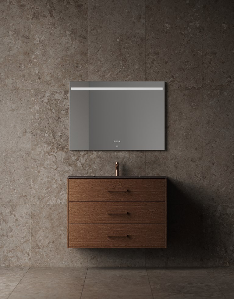 Servantskap i finér med grepslist i massiv eik. Et sjenerøst, varmt og naturlig blikkfang på badet.