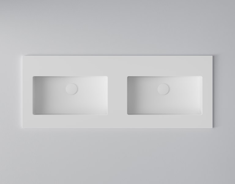 Servantskap med dobbel servant og slett front med integrert grepslist.