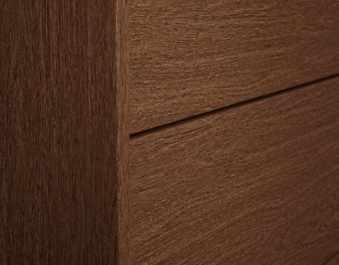 Terra Solid 80 er servantskapet for deg som ønsker et møbel som tar plass - både fysisk og visuelt. Med sin slette front og en skroghøyde på 70 cm kombinerer den stilren design med mer av alt: mer oppbevaring, mer karakter og en enda sterkere materialfølelse. Servantskapet har en mer uttrykksfull finér enn våre øvrige serier, en overflate som gir dybde og bevegelse i uttrykket og gjør møbelet til et statement i rommet. For et mer nedtonet uttrykk finnes Terra Solid også i Pure White eller i valgfri NCS-farge - perfekt for deg som vil tilpasse fargen til ditt eget bad. Med tre romslige og fullt uttrekkbare skuffer tilbyr servantskapet en oppbevaringskapasitet som ellers er forbeholdt lang større møbler. Alle overflater er behandlet med TX Top Extreme™, som beskytter mot fukt og slitasje i minst 15 år.