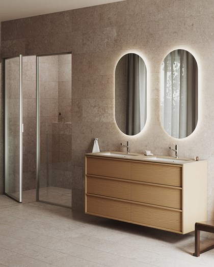 Servantskap Core Avant 60 med veggskap Solid i Warm Clay og speil Loox 70.